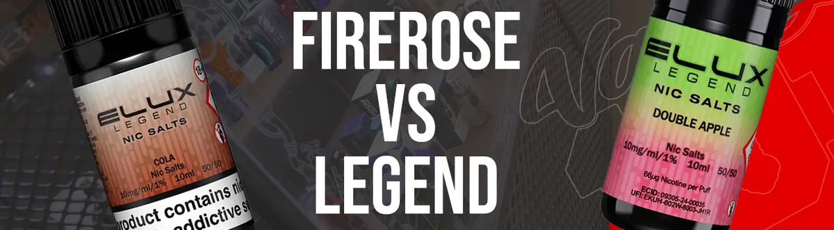 - Flavour intensity differs noticeably between collections. The firerose vape liquid pushes bolder, more aggressive taste profiles for maximum impact. Legend takes a smoother, more balanced approach perfect for all-day vaping.