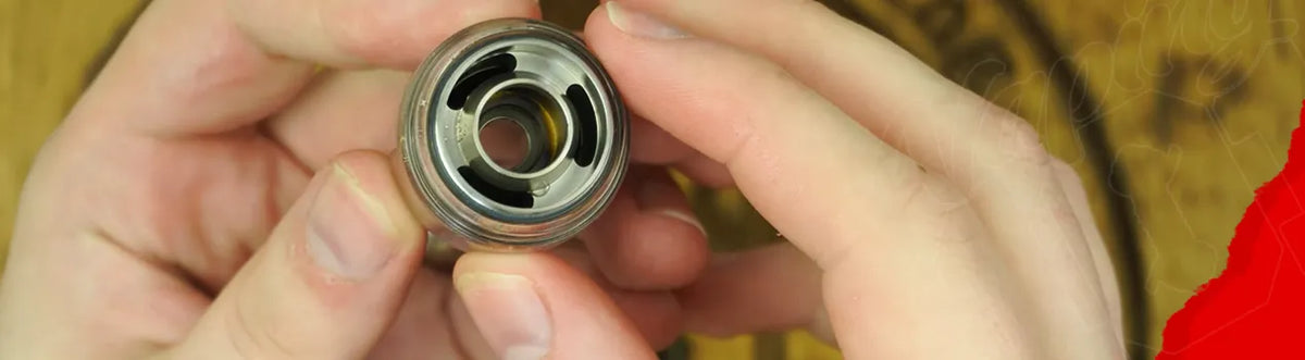 Airflow channels run down through the tank body and up through the coil housing, so each intake path goes directly through the coil. The result is a straightforward and efficient airflow design. The tank uses a top-airflow configuration, which improves leak resistance but carries the characteristic high-pitched whistle some top-airflow tanks produce.