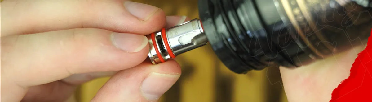 Coil installation is push fit. The coil simply slots into the base chamber and a press fit secures it. The side air holes on the coil housing are arranged so there is no one specific orientation to match when inserting the coil.