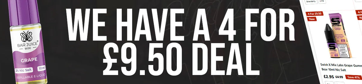 Purchase any 4 nic salt bottles for £9.50 total.