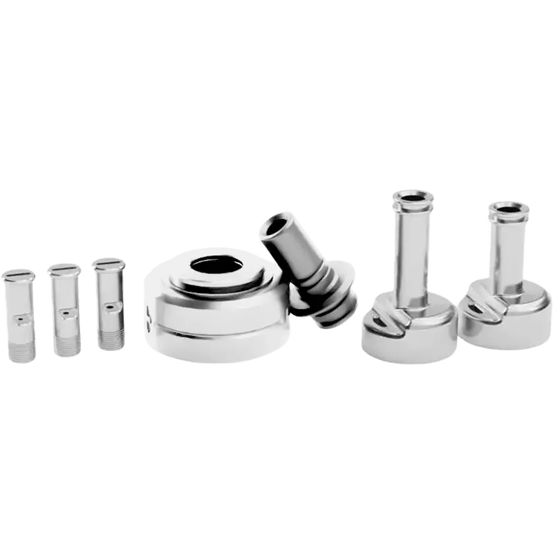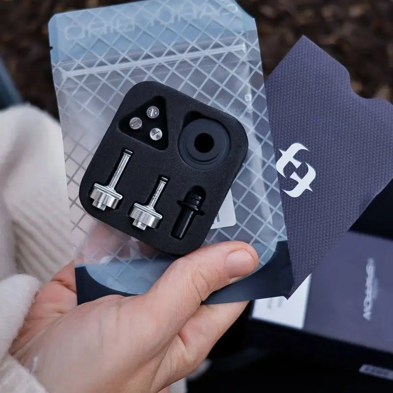- Airflow pin set — 0.8 / 1.1 / 1.3 mm inserts for fine-tuned restriction