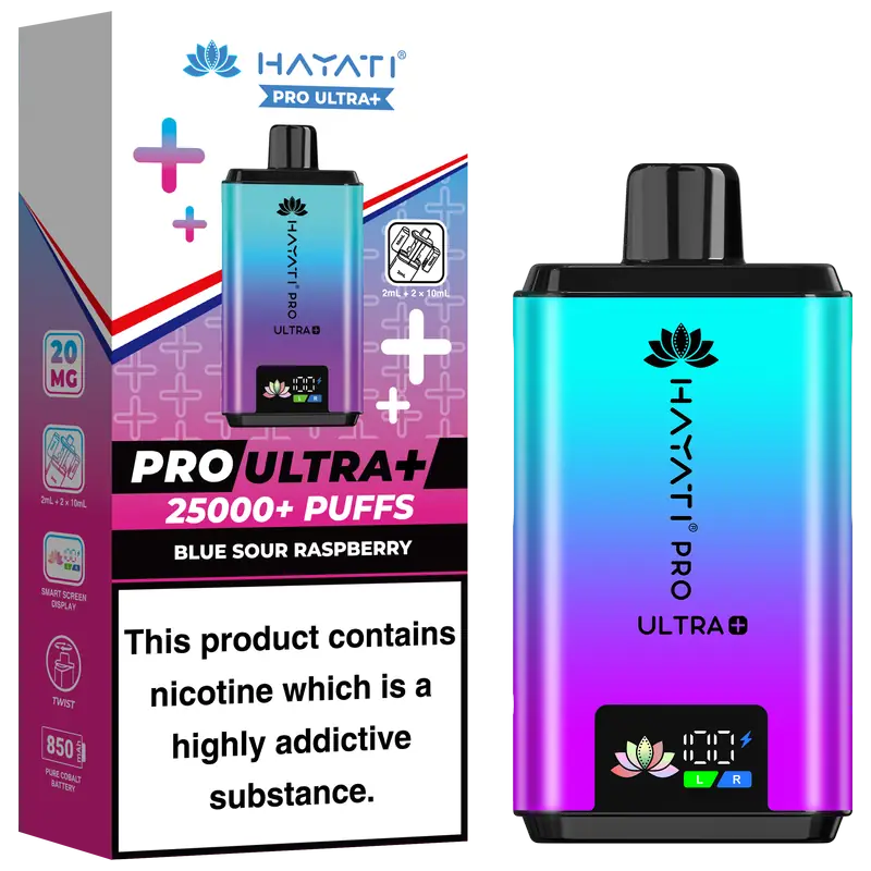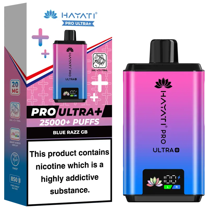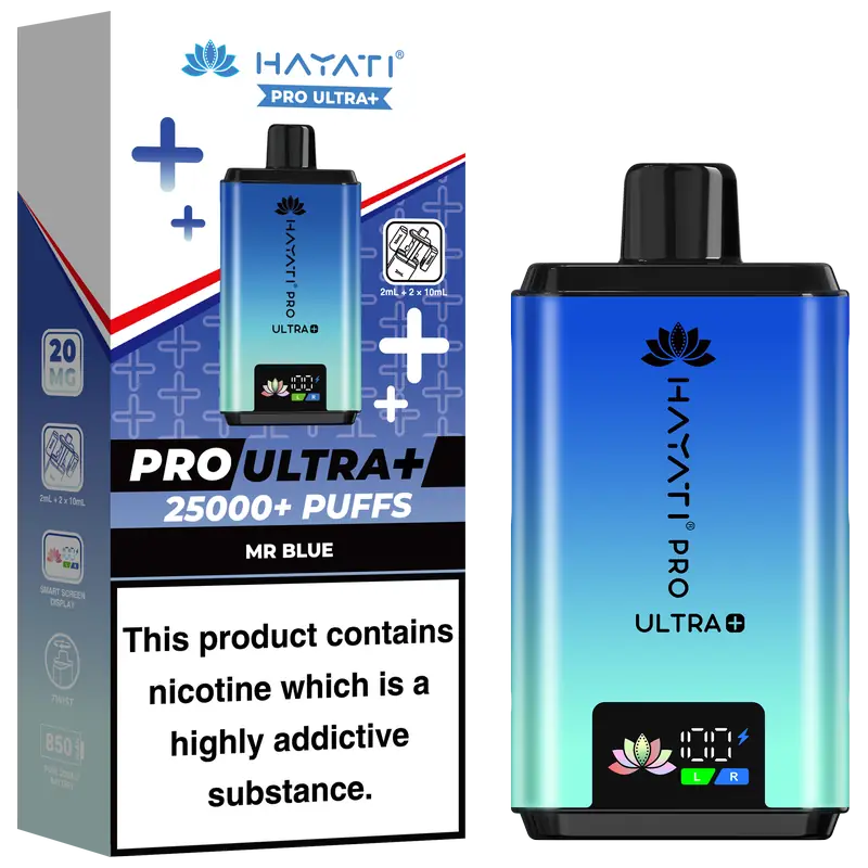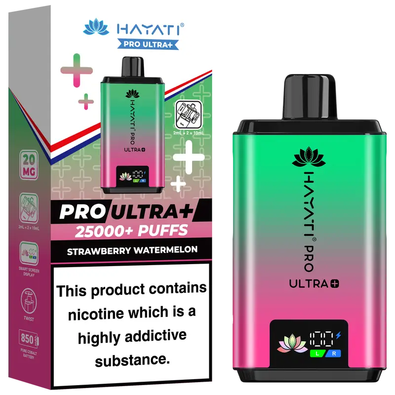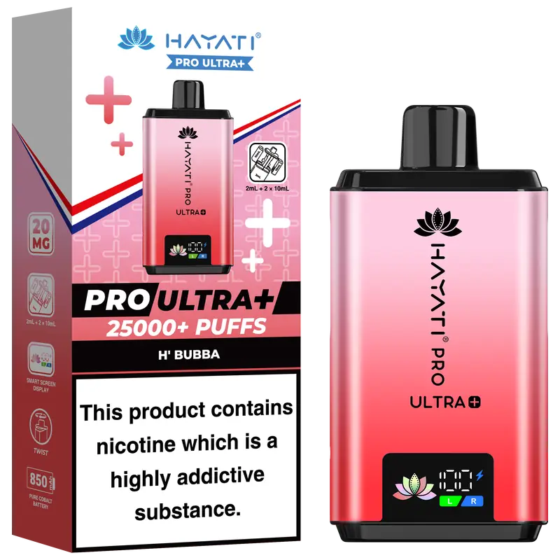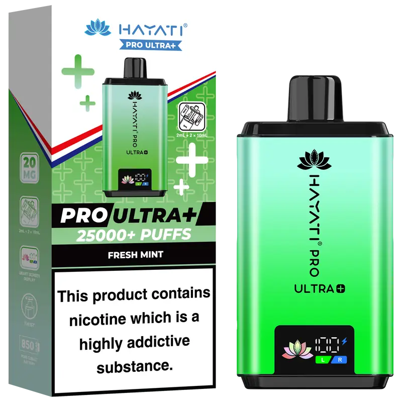 The Hayati Pro Ultra+ 25K prefilled pod kit delivers ultra-smooth flavour via a dual-mesh pod and an intuitive display for at-a-glance status. This robust upgrade packs a 1250 mAh turbo-recharging battery and easy flavour switching by pulling up and rotating the mouthpiece. When the first pod is finished, explore the brand’s 20 mg nic salt options for consistently satisfying MTL performance.