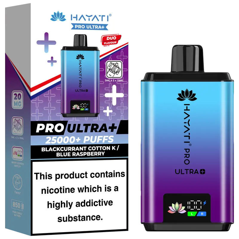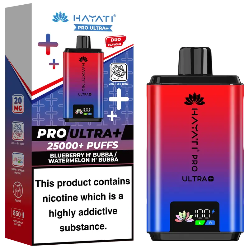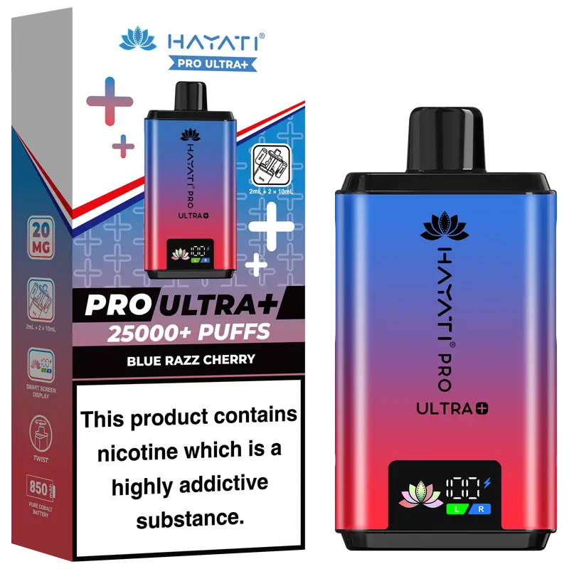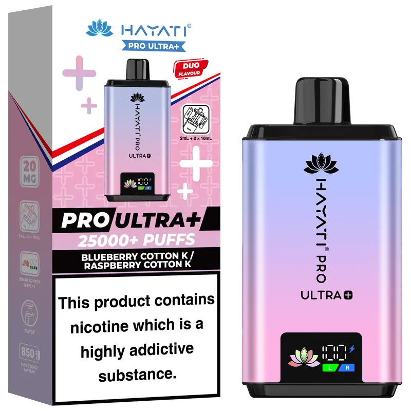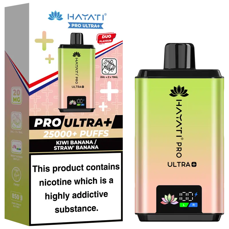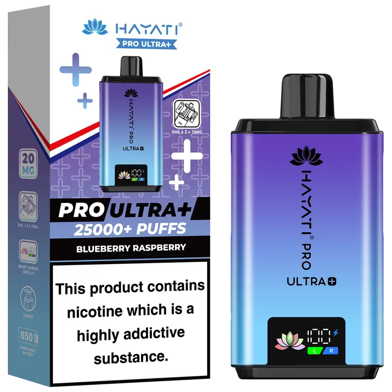 The Hayati Pro Ultra+ 25K prefilled pod kit delivers ultra-smooth flavour via a dual-mesh pod and an intuitive display for at-a-glance status. This robust upgrade packs a 1250 mAh turbo-recharging battery and easy flavour switching by pulling up and rotating the mouthpiece. When the first pod is finished, explore the brand’s 20 mg nic salt options for consistently satisfying MTL performance.