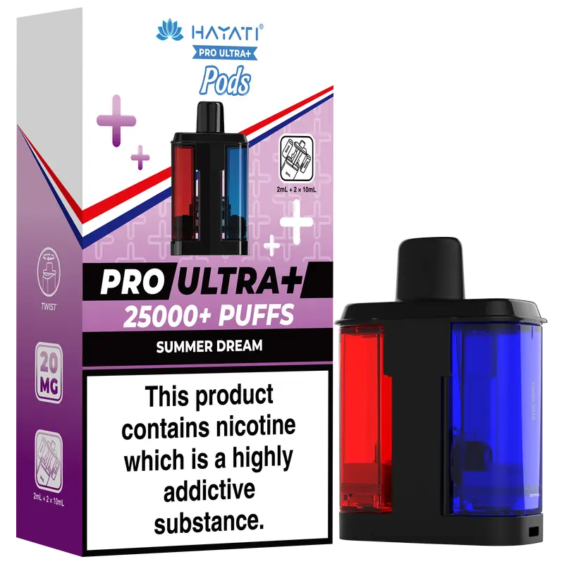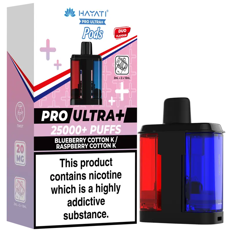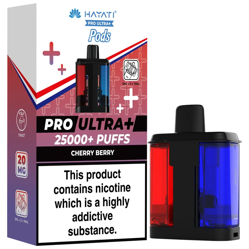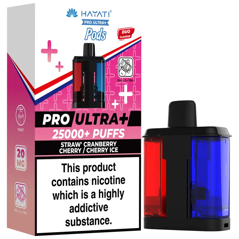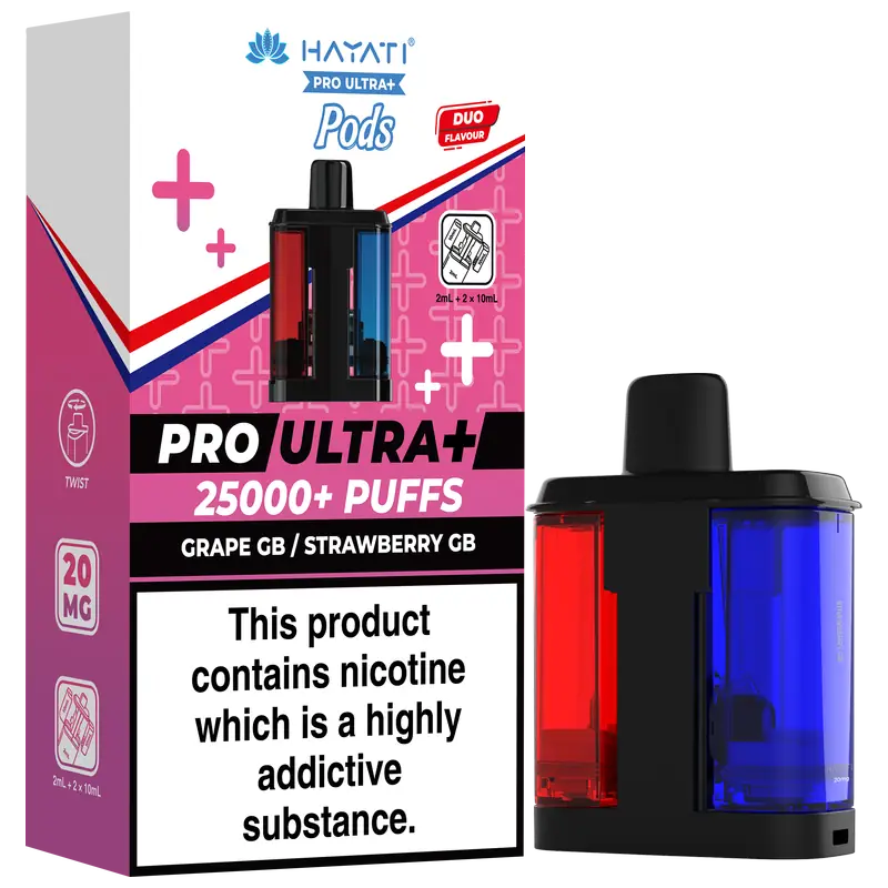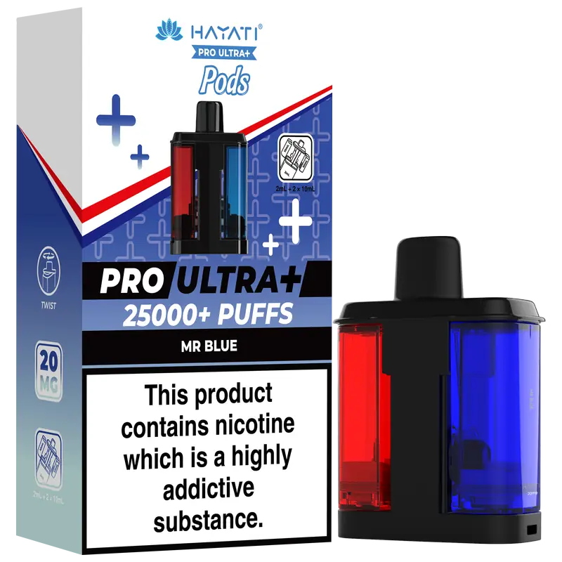 - 2 × Hayati Pro Ultra+ 10 ml auto-refilling e-liquid tanks (20 mg nic salt)