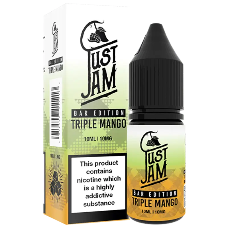 - 1 × 10 ml bottle of Just Jam Bar Edition Triple Mango 50/50 vape juice (chosen nicotine strength)