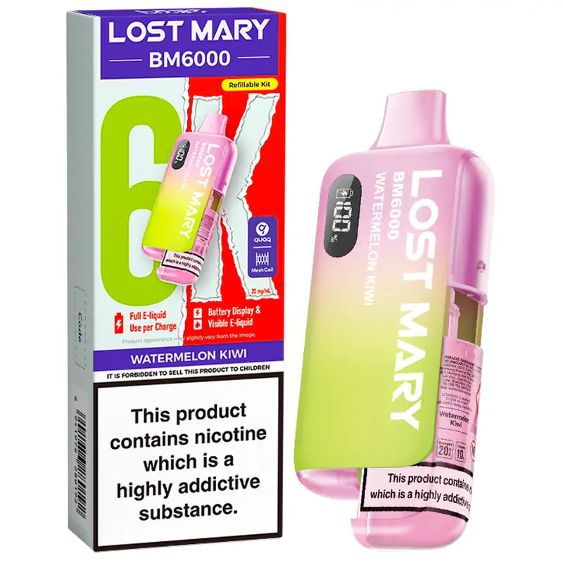 The Lost Mary BM6000 Prefilled Pod Vape Kit delivers a high-performance MTL vaping experience with the convenience of a prefilled system and an innovative refillable pod design. Manufactured by Lost Mary, this compact and sleek kit offers up to 6000 puffs, a powerful 1000mAh rechargeable battery, and a smart refill system from a built-in 10ml e-liquid container.