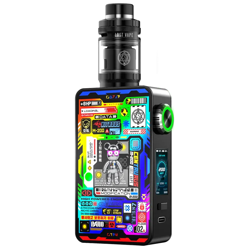 The Lost Vape Centaurus M200 vape kit pairs the 200W dual-18650 M200 mod with the Centaurus Sub Ohm tank and UB Max coils for outstanding DTL performance. Running on two 18650 batteries (sold separately), it delivers up to 200 W with the responsive Quest chipset and an intuitive jog-dial interface. Paired with the Centaurus Sub Ohm Tank and mesh-built UB Max coils, it’s tuned for bold flavour and big clouds—perfect for DTL vaping with thick high-VG e-liquids.