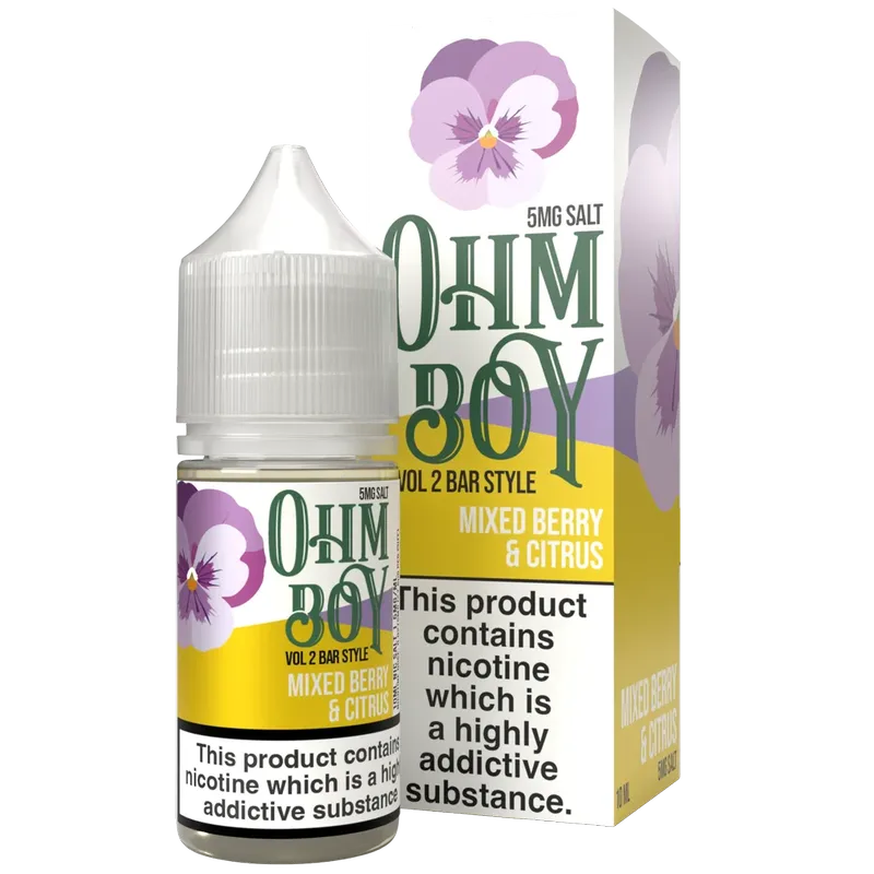 Mixed Berries & Citrus By Ohm Boy V2 Bar Style 10ml is a punchy fruit nic salt e-liquid that combines sweet mixed berries with a zesty citrus twist for a bright bar style flavour.
