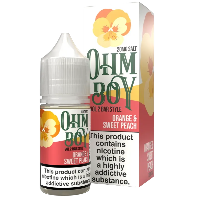 Orange & Sweet Peach By Ohm Boy V2 Bar Style 10ml is a smooth, fruity nic salt e-liquid that blends sun-kissed orange with soft, juicy peach for a bright and easy-going bar style vape.