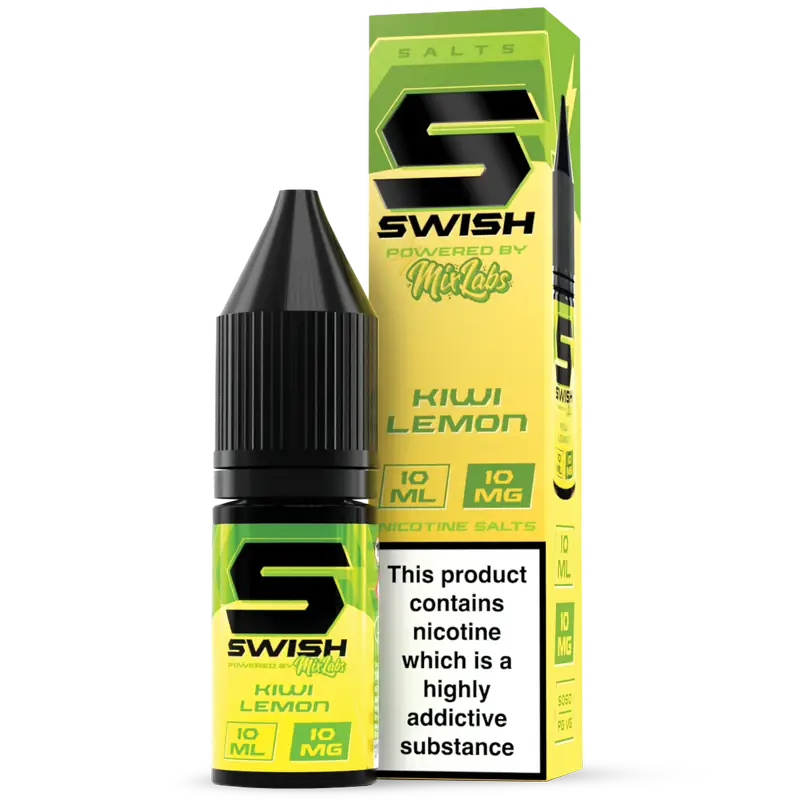 Swish X Mix Labs Kiwi Lemon is a sharp, juicy fruit-citrus nic salt that blends vibrant kiwi with cutting lemon. It’s part of the 10ml nic salts range and shines in MTL pod kits, giving crisp flavour definition with smooth nicotine satisfaction.